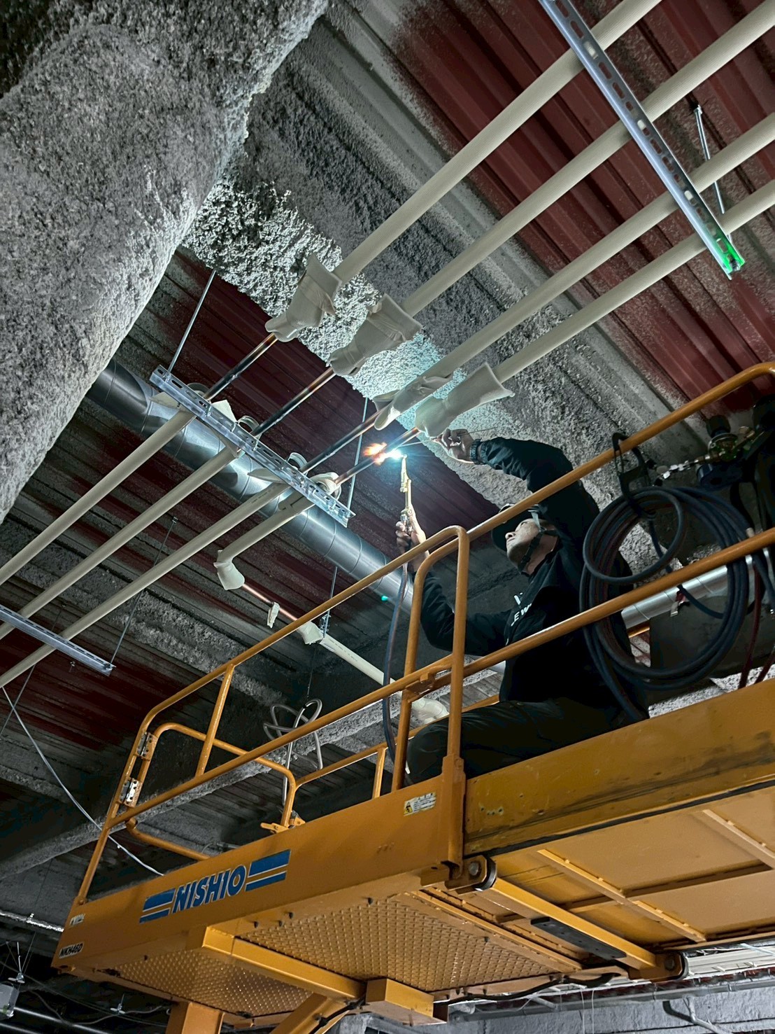 加古川市 大型テナント|天カセパッケージエアコン(ビルマル)新設工事【冷媒配管・溶接作業】