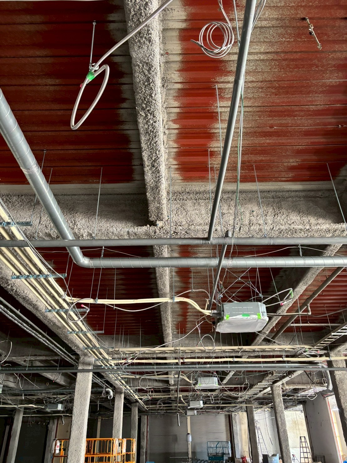 加古川市にて施工中の**大型テナント空調工事(天井カセット形パッケージエアコン・ビル用マルチ)**の続きです。