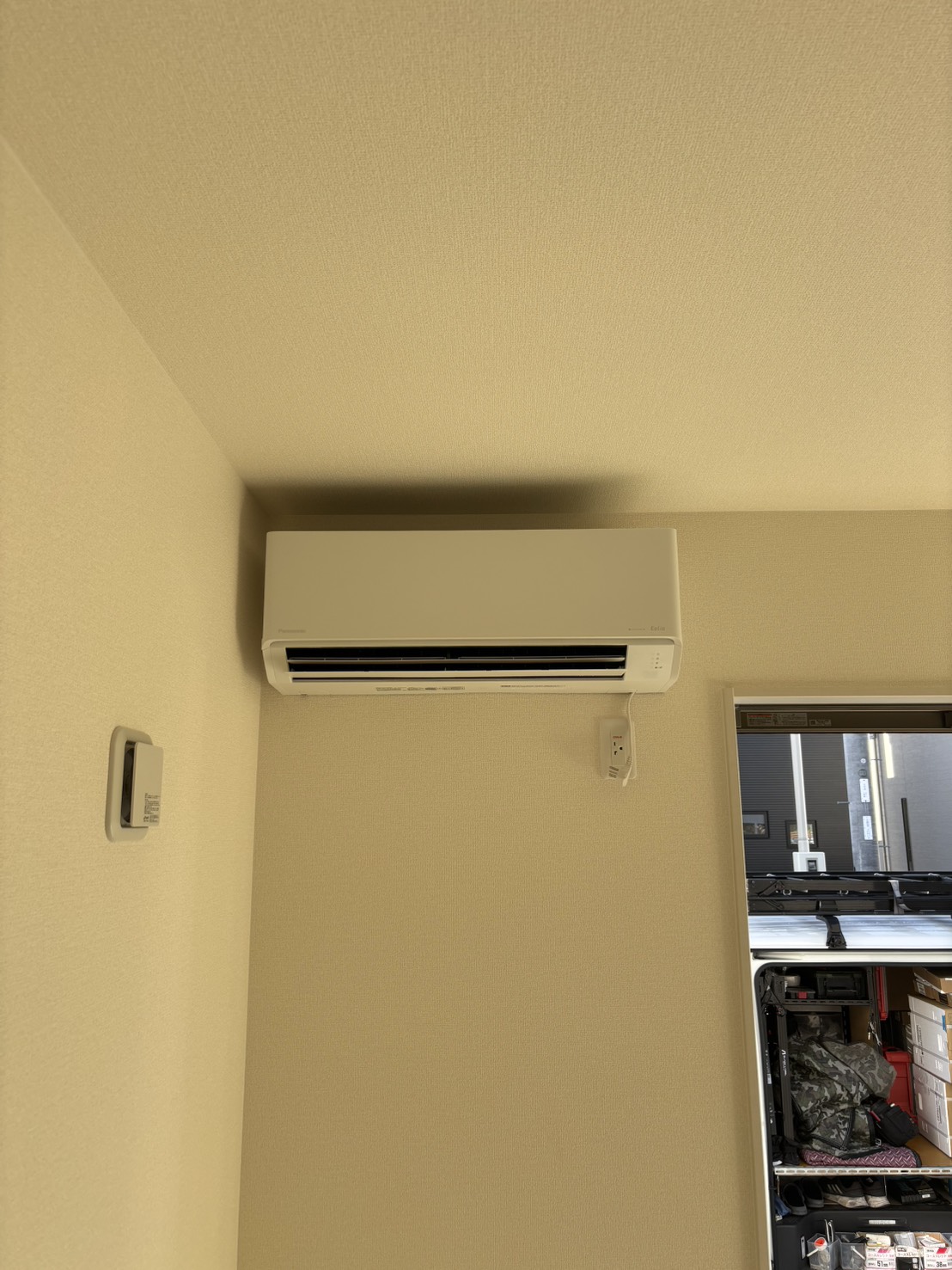 2025.01.07 神戸市西区 エアコン新設 地域:兵庫県神戸市西区建物:新築一戸建て工事内容:新品エアコン工事 新築一戸建て一階のお部屋です。 配管等(冷媒パイプ・電線・排水ドレンホース)を束ねてカバ…