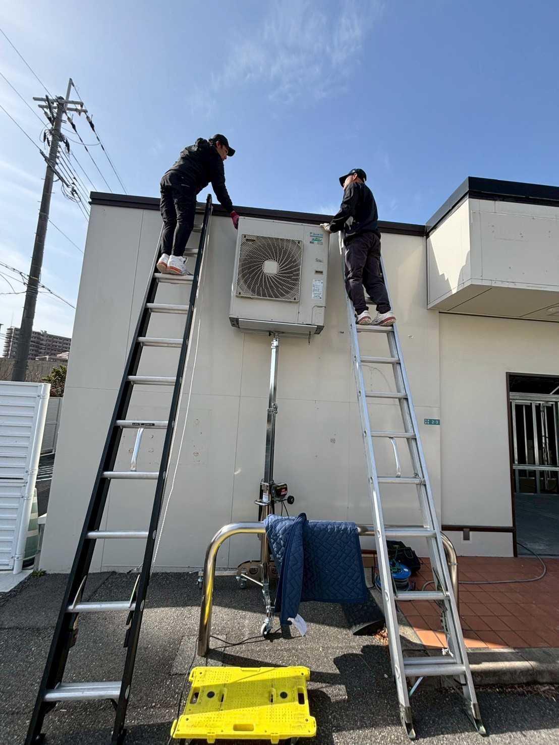 2026.02.26 西宮天カセパッケージエアコン新設! 【西宮市】天井カセット形パッケージエアコン設置工事|室外機をアッパーで1F屋上へ搬入 西宮市にて、天井カセット形(天カセ)パッケージエアコンの新規設置工事を行いま…