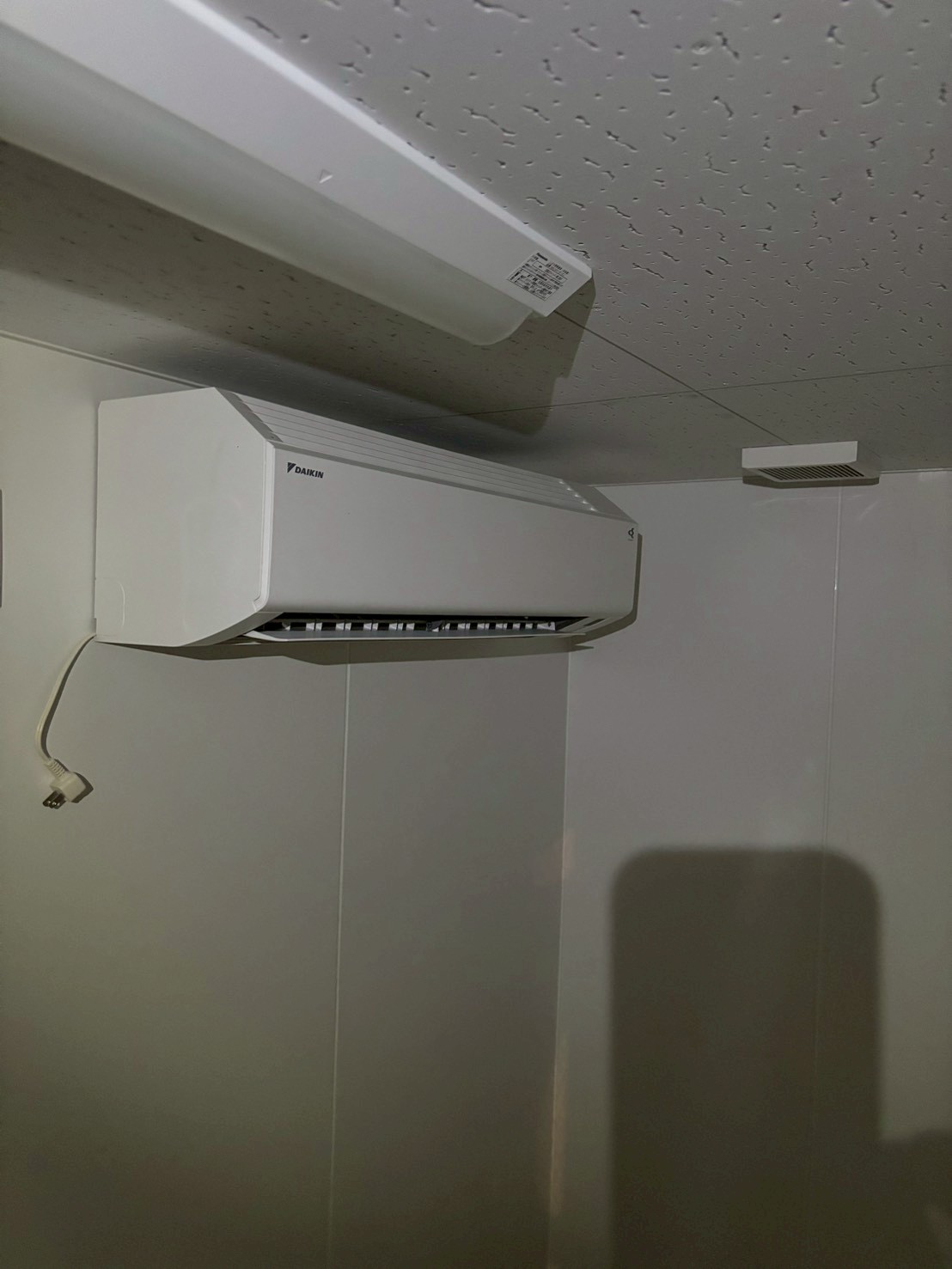 大手製鉄所内の新社屋にて、ルームエアコンの設置工事を行いました。