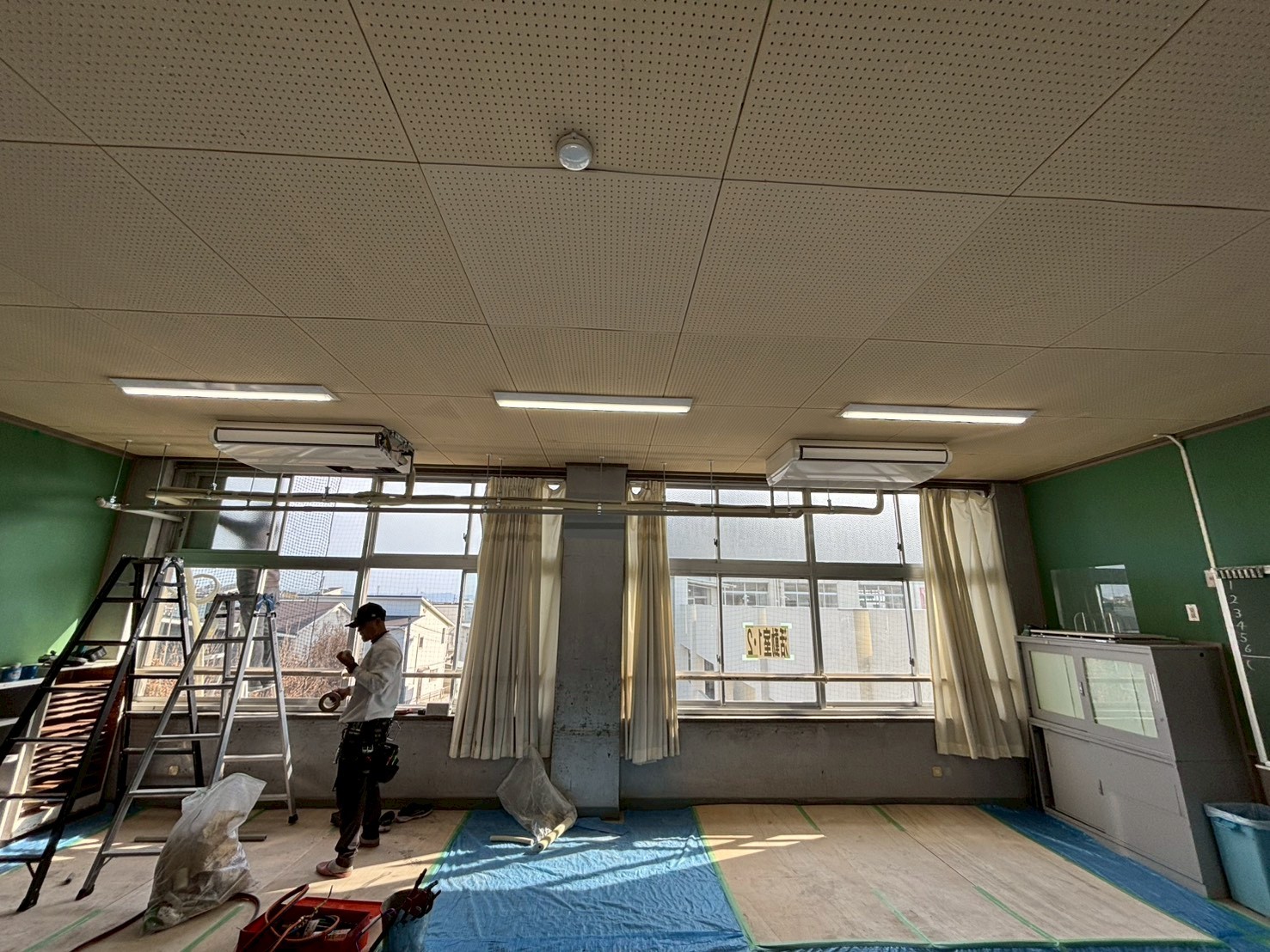 今回は教室の空調環境改善のため、既存設備の見直しと合わせて業務用エアコンの設置工事を実施しました。
