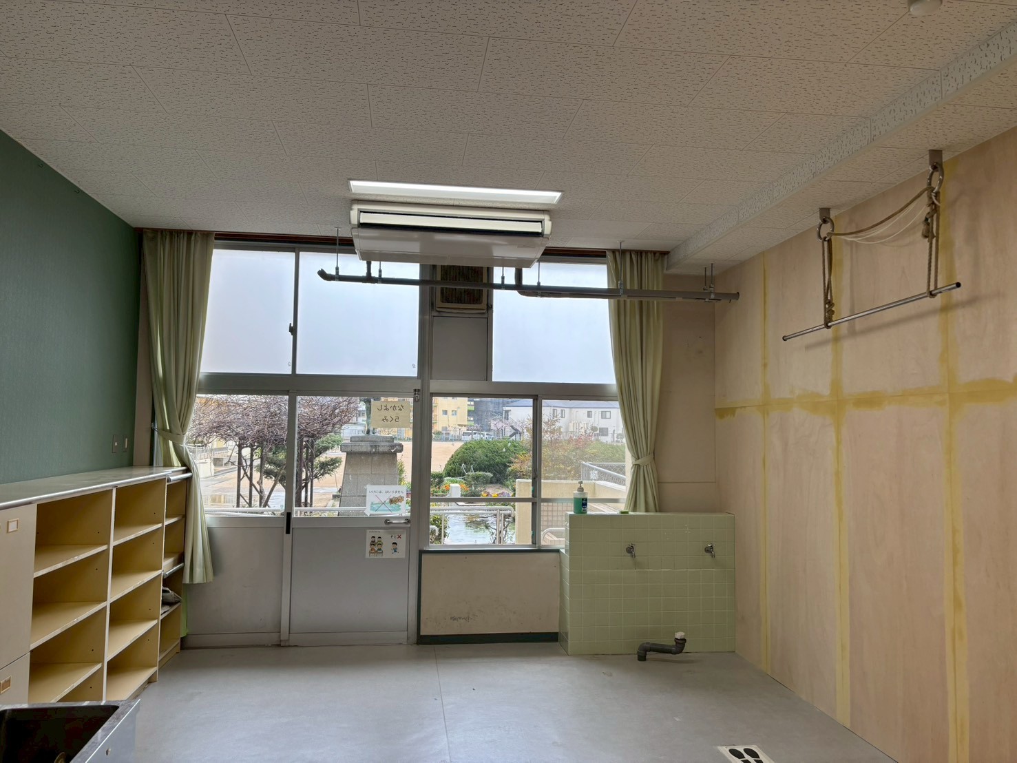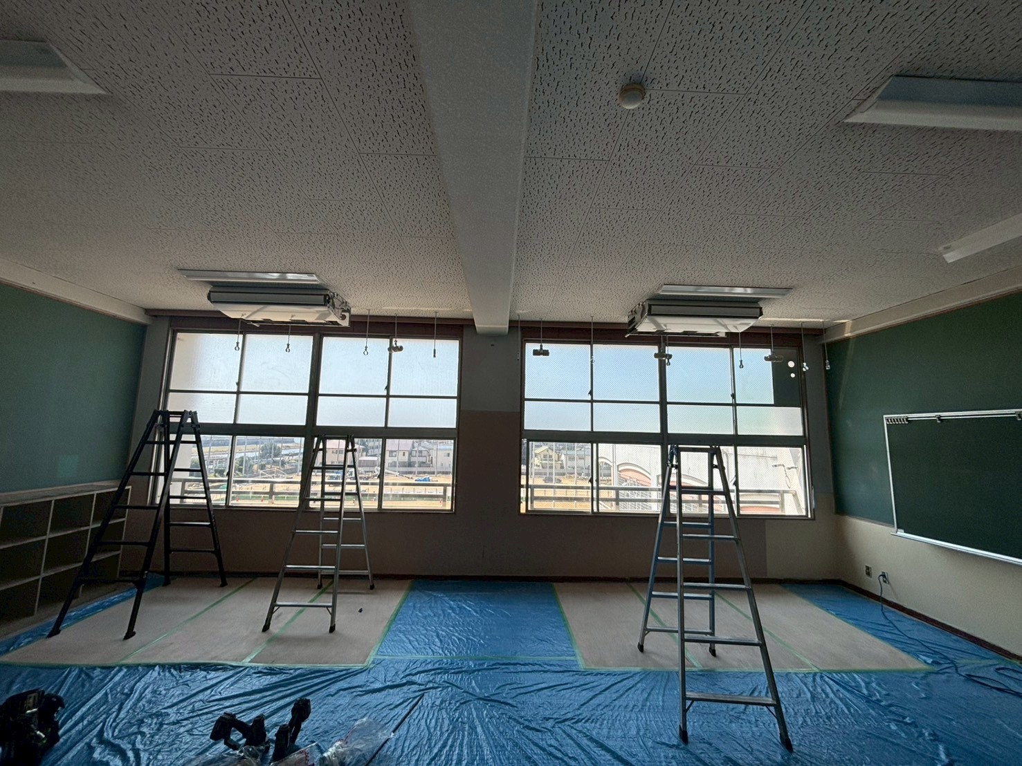 2026.04.02 明石市中学校 天吊りパッケージエアコンシングル2台… 明石市の中学校にて教室分割&エアコン新設工事を行いました 今回は、明石市内の中学校にて1つの教室を2つに分割する工事と、それに伴う天吊りパッケージエアコン(シング…